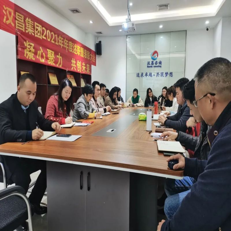 2022年1月26日,汉昌集团在集团总部召开了2021年年度述职暨表彰大会,董事长伍昌海、总经理唐华林、各部门负责人及员工代表都参加了此次大会,会议就2021年度集团的主要工作进行了回顾、分析、总结,对2022年的工作进行了部署、展望。对2021年度表现优秀的团体及个人进行了表扬、肯定。