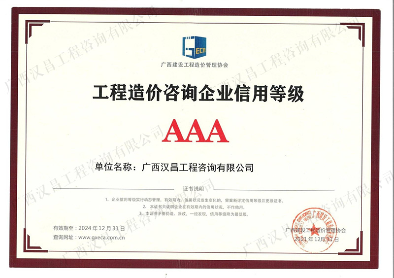 工程造价咨询3A信用证书